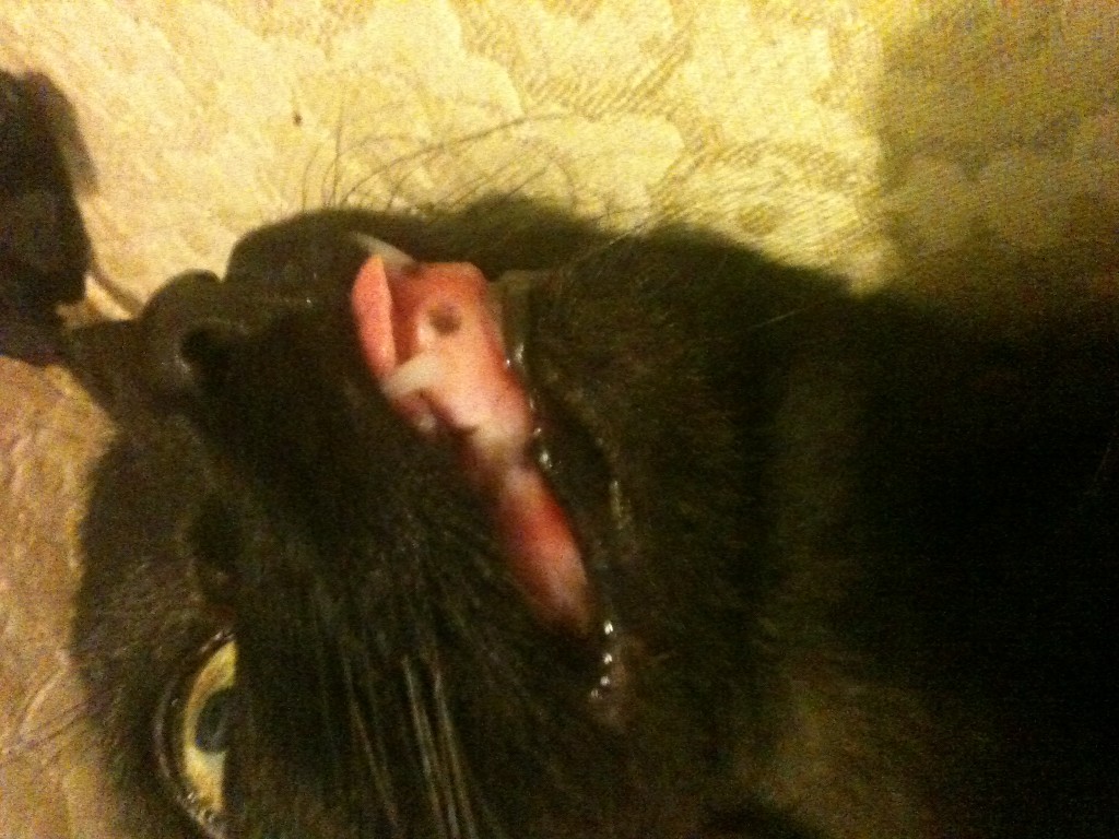 I watch Madonna now, with her weird healed face. I can pet her. She can even rub her naked jaw against my hand and lick my fingers and I don’t mind. I watch her, I watch the way that she conducts herself as she always has, like the cat she’s always been. It seems she doesn’t even notice that her face is now different. There is no adaption in her behavior for the way the tiny pink ribbon tip of her tongue always sticks out of her maw.