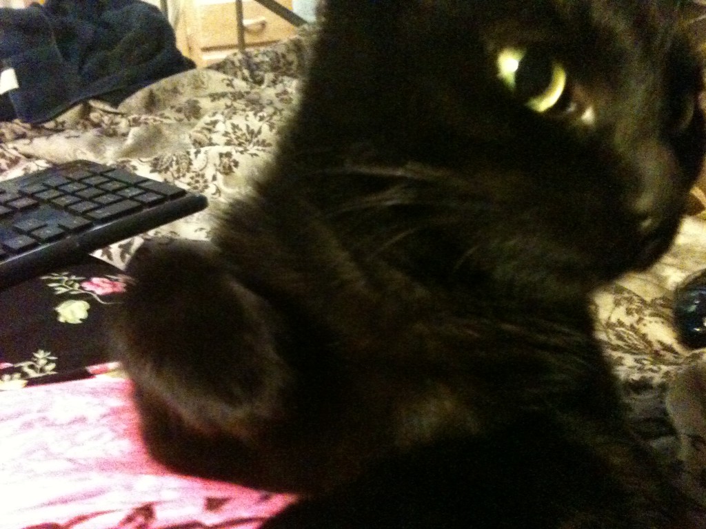 Finally one day, when I was very sick, she fell down and I let her stay. She cuddled me on the bed and I was comforted by her. I’m not a cat person, but she had the kind of personality that you normally find in a dog. She can just lay there all day snuggling you and pretty much not make a nuisance of herself. I started to fall in love with her. I thought she was the perfect kitty.